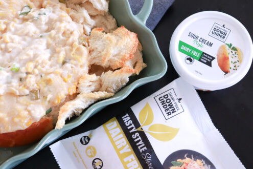 Bring some festive cheer to your Christmas table with this golden, creamy Dairy-Free Cheesy Corn Cob Loaf. Made with our Cream Cheese Style, Sour Cream Style and Tasty Style, it’s the ultimate warm and shareable starter.